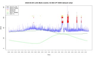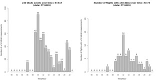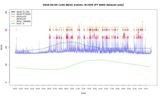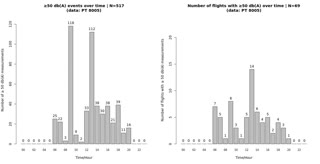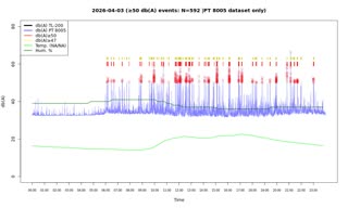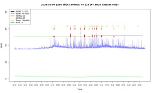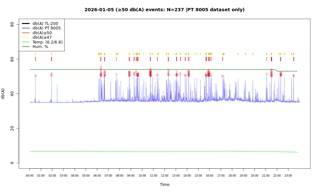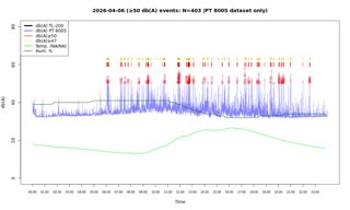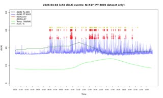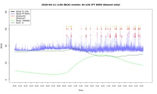 | No. | von | bis | secs. | mins. | Messungen | max DB | *Audio |